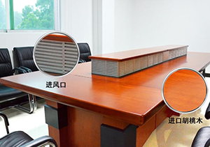 申瑞康設(shè)計的會議室桌面空氣凈化器,外觀造型漂亮,可容納多人同時煙霧吸收,桌內(nèi)機身的風(fēng)扇能源源不斷將煙霧廢氣空氣抽入,然后通過另一出口的導(dǎo)流片均勻地把被凈化過的空氣散開,這也就是對于桌面空氣凈化器來說最重要的一點。