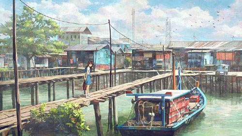 | 遠(yuǎn)方的天一絲絲微亮了起來(lái)。是魚(yú)肚的浮白,一層層淡淡地從啟明星邊的灰藍(lán)中褪了出來(lái),淡金色的微光散在云邊。小趙拉開(kāi)酒紅色的簾子,昂著頭,就那么靜靜地站著。絲簾垂在兩邊,框住了這嶄新的、朦朧的一切。 小趙的舊靴子在接連幾天的暴雨轟擊下終于開(kāi)了膠。她拖著四下離散的鞋底往教室踱去,凌晨5點(diǎn)半,她熱愛(ài)這孤獨(dú)的時(shí)刻,這讓她覺(jué)得自己與別人不一樣。每個(gè)人都不甘平凡的吧,她想。雨水混著污水汩汩地在下水道悶聲流著,摻著河里凈化水質(zhì)用的噴泉傾灑的聲音,竟也顯得不那么陰暗了。只是下水道早已被不知名的塑料袋或是一些其他異物堵住了,豁口不夠呼吸,于是那些污水和其余發(fā)臭的垃圾一起,回旋上升,然后匯成一團(tuán)黃白色的液體緩緩浮上來(lái)。像是免疫時(shí)傾瀉出的膿液,昭示著克服感染的成果,或是被同化的結(jié)果。汩汩地流著,一層一層慢慢涌上來(lái),似乎要把小趙吞沒(méi)。那些異物,不斷的,發(fā)黃的,淌著血液的,骯臟的,又是誰(shuí)的?