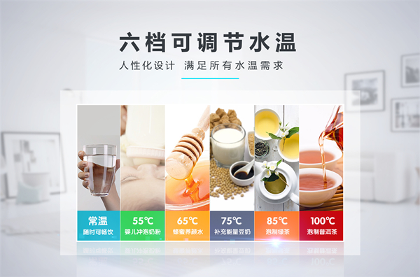飲水機(jī)以加熱飲水為根本,不同的生活場景對于水溫的需求也各不相同。傳統(tǒng)飲水機(jī)多為常溫水和熱水雙重選擇,使用限制較大。為提升產(chǎn)品的人性化體驗(yàn),榮事達(dá)智能溫?zé)犸嬎畽C(jī)采用六檔可調(diào)節(jié)水溫設(shè)定,常溫、55℃、65℃、75℃、85℃、100℃,不同水溫可以充分滿足大眾直飲、沖奶、泡茶等各類飲水使用需求,生活更為簡便。