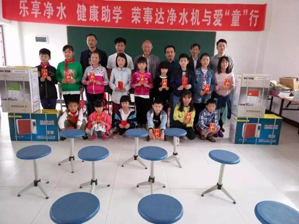 2018年6月1日,榮事達走進紅色革命老區——金寨縣,攜手金寨希望公益服務中心及地方公益協會共同發起“給山區孩子一杯水”——援建金寨中小學凈水設備公益活動。榮事達通過工程援建和設備捐贈的方式,為金寨縣所有中小學援建直飲水系統400多套,受到學生、學校、家長們的一致好評。該項目被全國文明辦評為“全國百佳公益項目”。