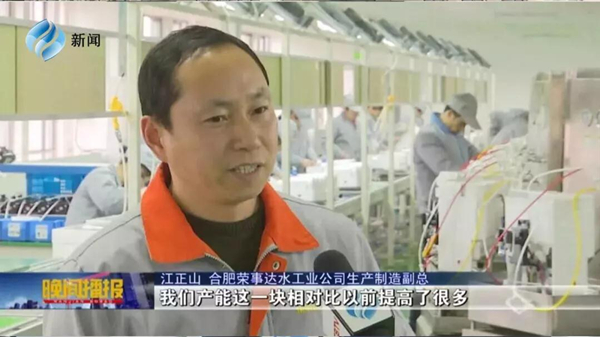 2月13日晚21時30分,合肥新聞頻道《晚間播報》節(jié)目播出新聞《人勤春來早 新車間開啟新目標(biāo)》,榮事達(dá)水工業(yè)公司作為本土知名企業(yè),在新春伊始全面開啟生產(chǎn)模式,公司全新投入使用的全自動智能化生產(chǎn)線、檢測線上已是一片忙碌景象。