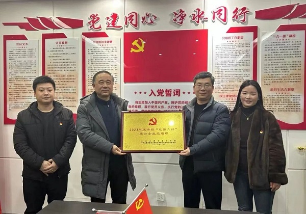 2024開(kāi)工伊始,雙鳳經(jīng)開(kāi)區(qū)企業(yè)黨委書(shū)記朱正彪和黨建指導(dǎo)員陶如生親臨榮事達(dá)水工業(yè),授予2023年度市級(jí)“雙強(qiáng)六好”非公企業(yè)黨組織榮譽(yù)銅牌。公司總裁支新郁和黨支部負(fù)責(zé)人肖曉曉熱情接待。