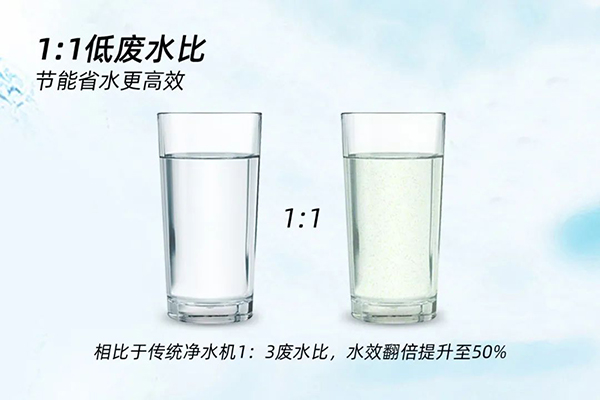 在提升用戶體驗的同時,榮事不斷追求節(jié)水技術(shù)的升級,以創(chuàng)新科技實現(xiàn)1:1超低廢水比。400G智能反滲透凈水機(jī)相比于傳統(tǒng)凈水機(jī)的1:3廢水比,出水效率由25%翻倍提升至50%,大大減少廢水排放,不僅節(jié)能環(huán)保,而且也節(jié)省了每一個家庭的生活開支,備受消費者喜愛。