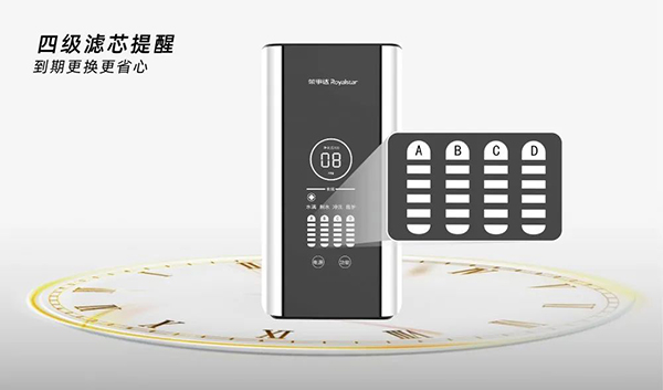 現(xiàn)代人越發(fā)追求極致簡約的生活方式。為使大眾凈水生活更加便捷省心,榮事達(dá)400G智能反滲透凈水機(jī)全面提升產(chǎn)品的智能化體驗,融入四級濾芯更換提醒功能,濾芯壽命到期閃爍燈即時提示,LED智能顯示面板運行狀態(tài)一目了然,讓用戶使用無后顧之憂,隨心所享,安心更省心。