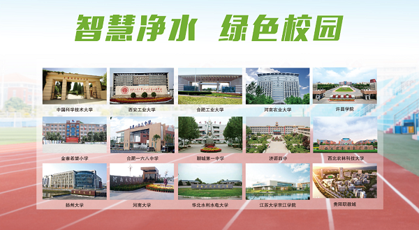榮事達水工業先后承建了中國科學技術大學、河南大學、西北農林科技大學、江蘇省丹陽市第五中學等三千五百余所學校的直飲水工程,護千萬師生飲水健康。