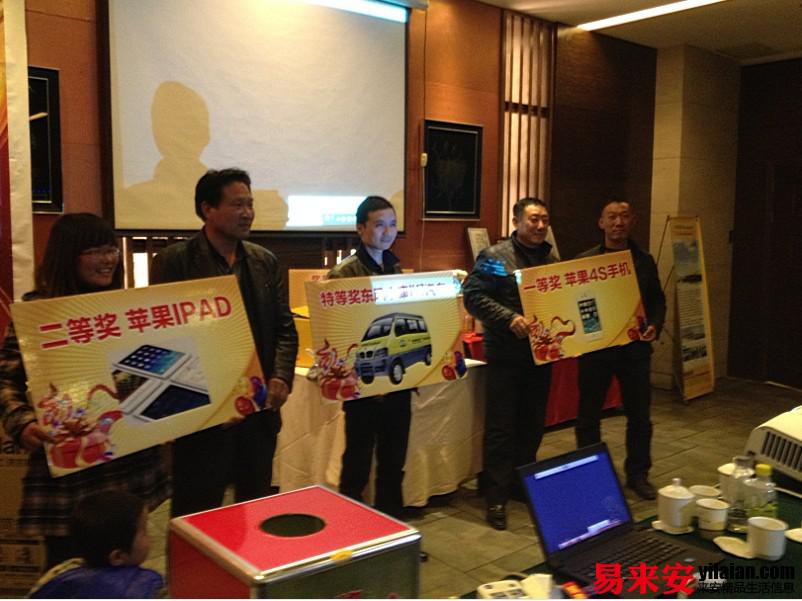會議還安排了訂貨抽獎環(huán)節(jié),東風(fēng)汽車、iphone4s、ipad、格蘭仕滾筒洗衣機(jī)等豐厚的獎品激發(fā)了與會經(jīng)銷商的訂貨熱情。一位來自天長的新客戶場訂貨達(dá)37萬 ,幸運(yùn)抽中汽車大獎。
