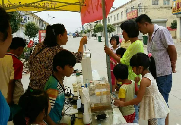 據(jù)了解,為了讓當?shù)鼐用窳私庾约业乃|(zhì)狀況,活動前一天,當?shù)卮砩毯蜆s事達水工業(yè)的工作人員下鄉(xiāng)為居民們免費檢測水質(zhì)。結果表明,當?shù)氐乃|(zhì)偏硬,重金屬含量偏高,不僅異味重,而且口感較差,飲水狀況令人堪憂。